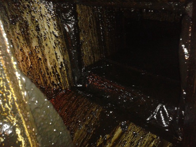 煙道、煙罩常年處于高溫工作環境,油煙氣化形成積油、積炭或油膩的膠狀物,這三種物質非常容易引起火災。若不經常清洗,積油越積越多 ,順著煙罩自然倒流,不僅影響飯菜質量,而且還有損酒店信譽。同時,煙道中易寄生老鼠、蟑螂,不符合國家衛生標準,油膩膠狀物長期扒附在金屬表面,增加煙道和風機工作負荷,還會腐蝕金屬材料,大地縮短煙道及風機使用壽命。